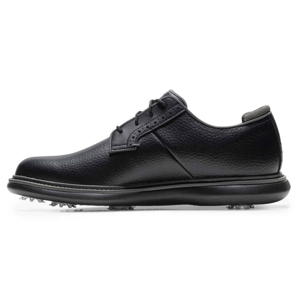 O FootJoy Traditions Blucher – Black combina o estilo clássico com o conforto moderno, oferecendo o equilíbrio perfeito entre elegância e performance no campo de golfe.